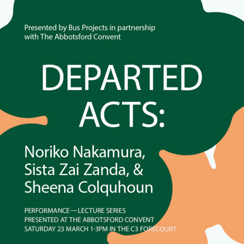 Accompanying Kiera Brew Kurec’s project Archiving the Temporal: Emanate, Bus Projects will be hosting a public program incorporating three panel discussions with esteemed Australian and International performance practitioners, academics and historians over the month of April. The discussions encompass ritual as a basis for performance making, ethical reinterpretation/re-performance, and methodologies in performance archiving. These talks are facilitated by Kiera Brew Kurec, generously hosted by Bus Projects and supported by the City of Yarra.