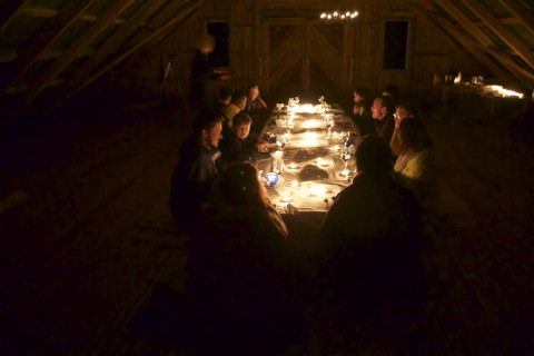 Hosting a dinner online is a socially-engaged event that aims to create a sense of community through sharing food.