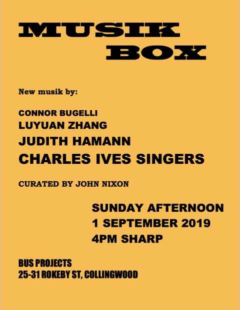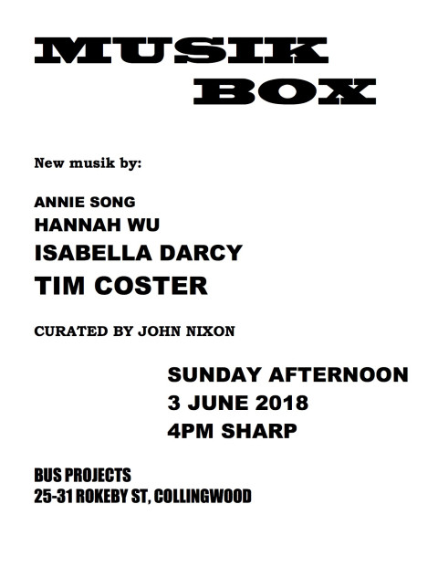 MUSIK BOX is an ongoing series of experimental music concerts featuring emerging and established artists and musicians. The upcoming concert features electronic music.