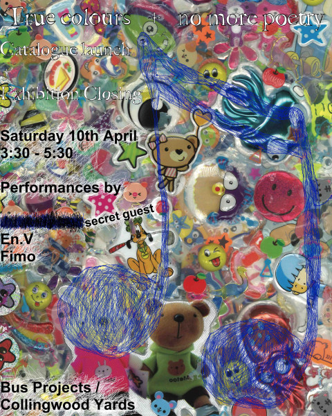 Please join us at Bus Projects this Saturday 10th April, 3.30-5.30pm, for the ‘True Colours’ catalogue launch. There will be performances by En.V, Fimo, and a secret guest.